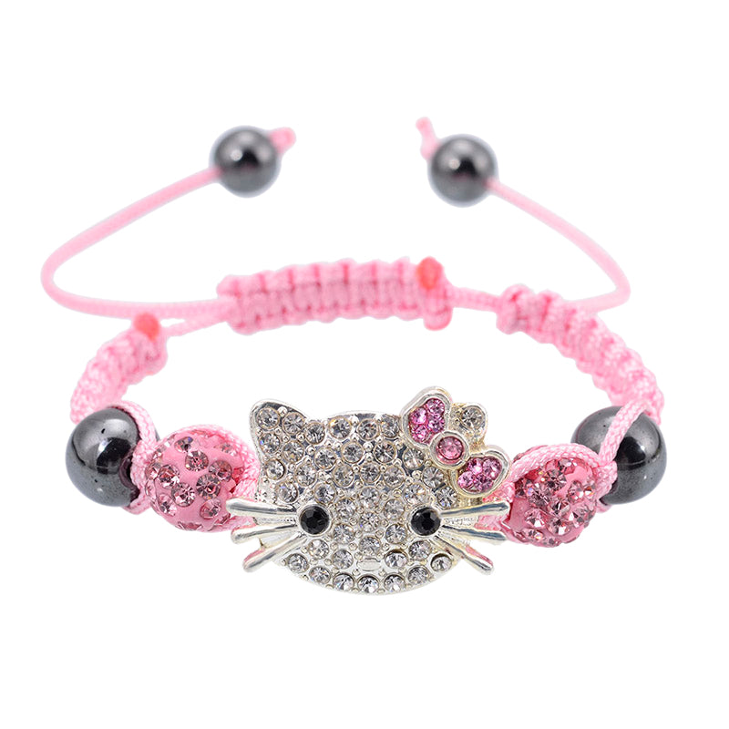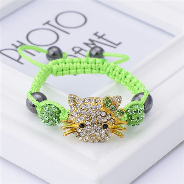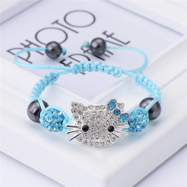 Cute Children Cat Hello Kitty Bracelet for Kids Girls Boys Shamballa Beads Connected Braid Charm bracelet Jewelry - Sellweyy