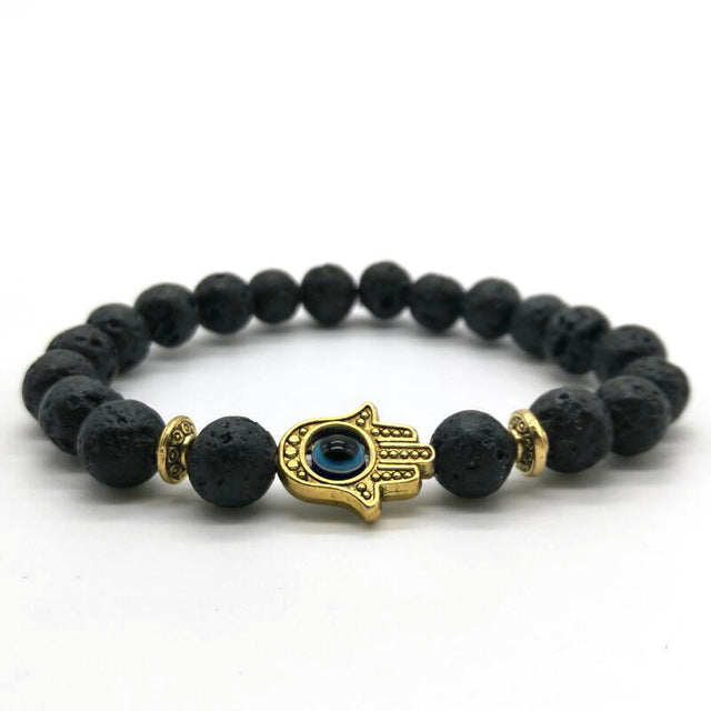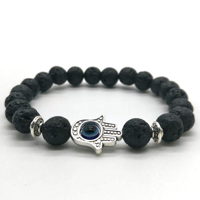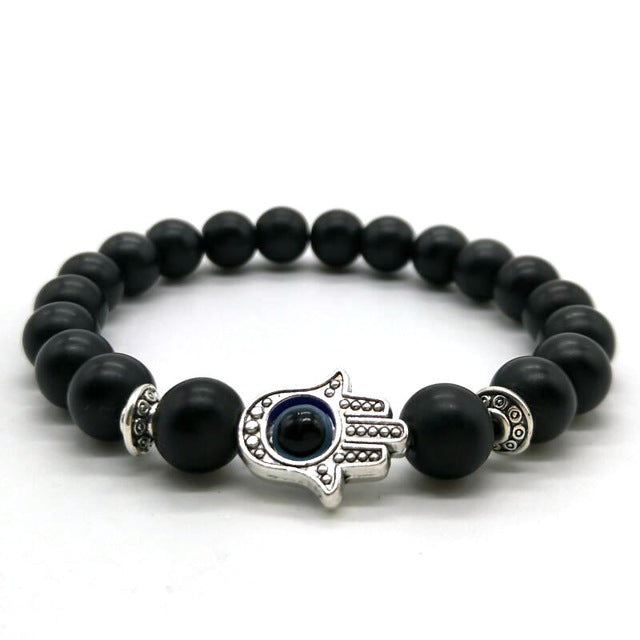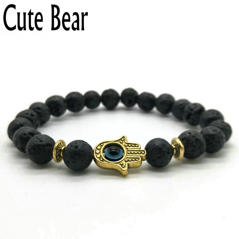 Black Matte Bead Lava Stone Beaded Bracelet Women Fatima Hamsa Hand Bracelet Men Jewelry - Sellweyy